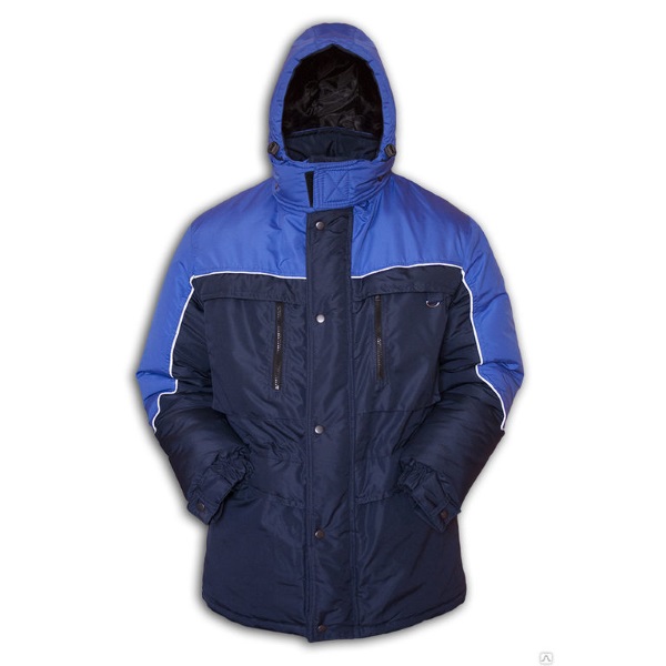 Цвет: темно-синий с васильковой отделкой Вид изделия: куртка мужская зимняя Комплектность: куртка Защитные свойства: ТнВ Класс защиты: 2 класс защиты от пониженных температур Климатический пояс: III-й климатический пояс ГОСТ Р 12.4.236-2011, ТР ТС 019/2011 Ткань верха: «Таслан», состав: 100% ПЭ, пл. 110±10 гр/м2, с водоотталкивающей пропиткой, с пропиткой PU Утеплитель: "Синтепон"-150 гр/м2. Куртка: 450 гр/м2 (3 слоя корпус, 2 слоя рукава) Подкладочная ткань: "Тафета 190", состав: 100% ПЭ, пл. 55±10 гр/м2 Центральная застежка: на молнию трактор №5 - застежка на молнию закрытую двумя ветрозащитными планками на кнопках - нагрудные объемные карманы на молнии с полукольцом на левой полочке - нижние прорезные карманы в листочку с клапанами - воротник-стойка - съемный капюшон с регулировкой объема по лицевой части - возможность использования капюшона на каску - манжеты с частичной стяжкой на эластичную резинку и патой на липучке - регулировка ширины изделия по талии куртки - внутренний накладной карман - в костюме используется световозвращающий кант
