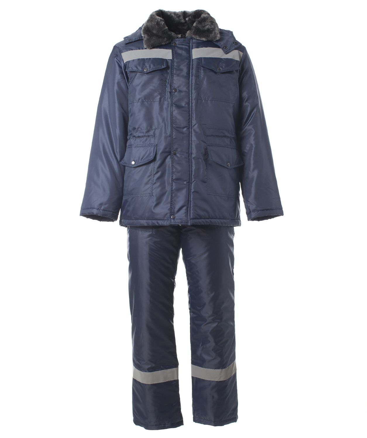 Костюм "МАСТЕР ОКСФОРД" изготовлен в соответствии с ГОСТ и включает в себя два предмета: куртка / полукомбинезон. Он оснащен утепленной ветрозащитной планкой с застежкой на кнопки. Куртка удлиненная, прямого силуэта. На модели расположены накладные карманы с клапанами, которые закрываются на кнопку. Ширина изделия регулируется по талии куртки. Изделие оснащено съемным капюшоном и меховым воротником. Центральная застежка утепленного полукомбинезона – молния. На спине вдоль линии талии и на бретелях эластичная резинка. Для безопасной работы сотрудника в местах с плохим освещением на костюме «МАСТЕР ОКСФОРД» предусмотрена световозвращающая полоса шириной 50 мм. ТКАНЬ ВЕРХА: «Оксфорд 210» с полиуретановым водонепроницаемым ветрозащитным покрытием (100% ПЭ, пл. 95±10 гр./м²). УТЕПЛИТЕЛЬ: Синтепон - 100 гр./м² (в куртке 4 слоя, в полукомбинезоне 2 слоя).
