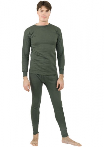 Состоит из рубахи и кальсон. Рукава и низ кальсон на манжетах. Цвет: оливковый Материал: 100% хлопок Размер: с 44 по 62 Рост: 170-176, 182-188