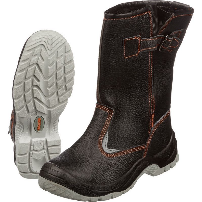 Сапоги серии «Мистраль», изготовлена методом прямого литья. Обеспечивает высокую защиту от механических воздействий (от ударов в носочной части 200 Дж) Размер до 52 включительно! ПОДНОСОК: Укрепленный, Металлический Мун 200 Дж ПОДОШВА: Литая, Двуслойная, Полиуретан термополиуретан (ПУ-ТПУ) СТЕЛЬКА: Антипрокольная, Металлическая1200Н Материал верха обуви "Мистраль" термоустойчивая водоотталкивающая кожа толщиной 1,8 - 2,0. Подошва - двухслойная, с ходовым слоем из износостойкого термополиуретана, с улучшенным сопротивлением к скольжению, стойкостью к деформациям и истиранию. Подойдет для использования в строительстве, ЖКХ, нефтегазовой, горнодобывающей, химической промышленности, агропромышленном комплексе, металлургии и многих других.