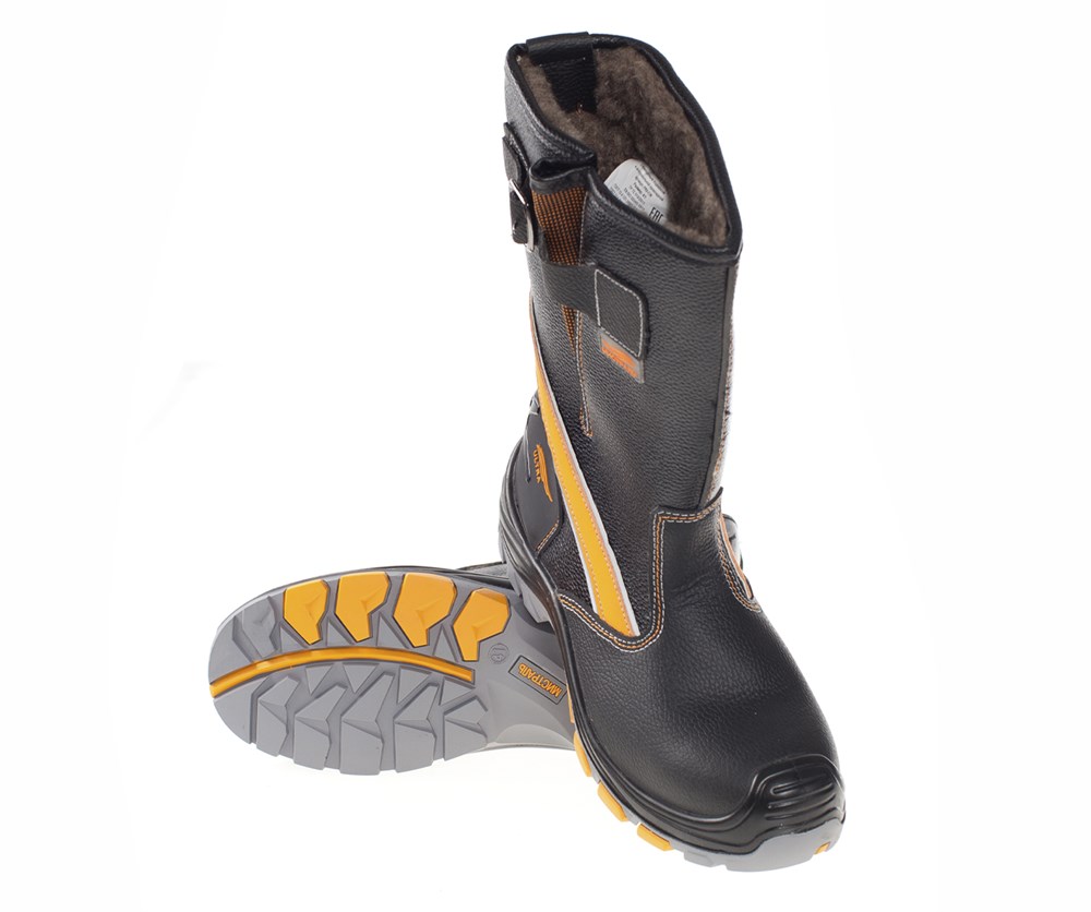Сапоги МИСТРАЛЬ ULTRA PR8-CW шерстяной мех ПУ-РЕЗИНА с ПП и АС Материал верха – термоустойчивая водоотталкивающая кожа (юфть) толщиной 1,8–2,0 мм. Подошва – двухслойная, устойчивая к воздействию нефти, нефтепродуктов, щелочей концентрации до 20%, повышенных температур. Голенище - искусственная кожа. Верхний слой из полиуретана обладает амортизирующими свойствами, гасит ударные нагрузки, а также придает обуви легкость, комфортность и повышенные теплозащитные свойства. Ходовой слой изготовлен из износостойкой, термостойкой (+300°С / 60 с), морозостойкой резины на основе нитрильного каучука с улучшенным сопротивлением скольжению, стойкостью к деформациям, истиранию. Носочная часть имеет дополнительную защиту в виде полиуретановой накладки, предотвращающей механические повреждения обуви и препятствующей проникновению холода. Для защиты от ударов в носочной части стопы в обуви применяется композитный подносок (Мун 200), имеющий конфигурацию, препятствующую надавливанию верхнего края на стопу, и оборудованный прокладкой из полиуретана. Утеплитель: шерстяной мех (80% шерсть) высота ворса 15 мм. Подносок: укрепленный, из композитного материала 200 Дж. Стелька: Антипрокольная, металлическая. Подошва: литьевой метод крепления, двухслойная, полиуретан/резина на основе натурального каучука) ПУ-РЕЗИНА.